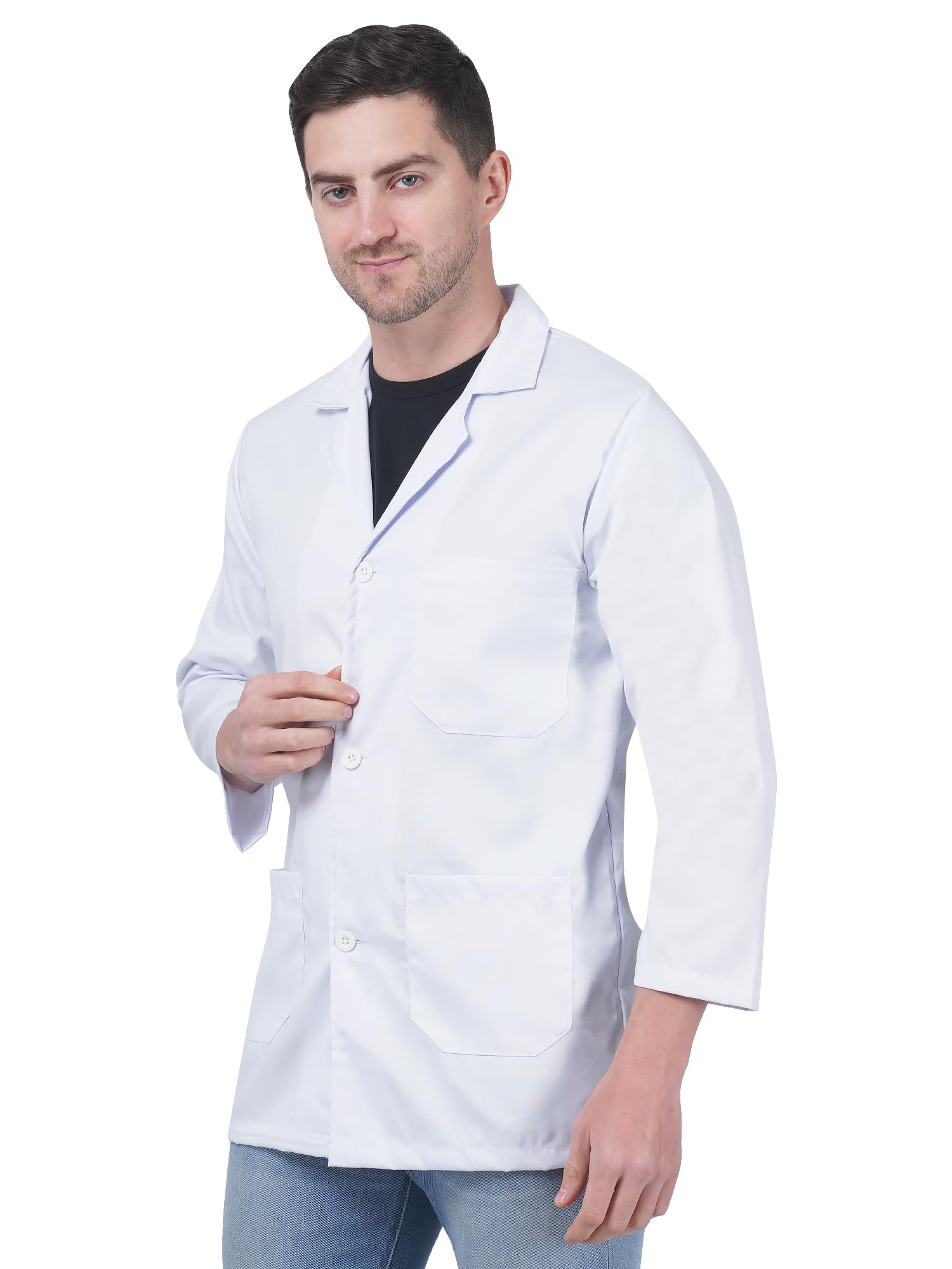 - Premium Quality Wrinkle Resistant terri Cotton Suiting Fabric; This Particular Lab Coat Has Dual Stitching Which Makes It Extremely Durable And Can Be Used In Rough And Tough Conditions Also