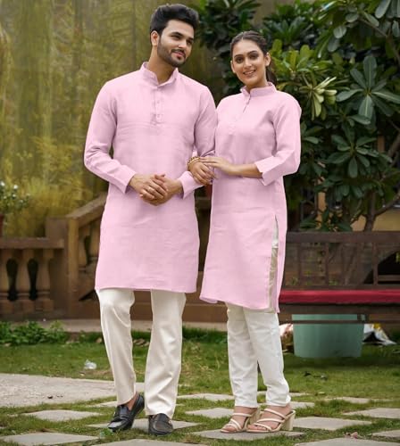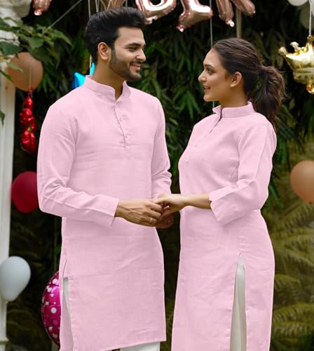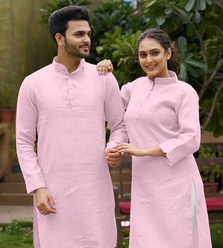 - Looking for a stylish and coordinated outfit for you and your loved one? Look no further than our couple kurta and kurti set! This beautiful set features a traditional kurta for the man and a matching kurti for the woman. The kurta is made of high-quality Linen cotton and features an exclusive design. The kurti is made of the same fabric and features a relaxed fit. This couple set is perfect for Party, weddings, anniversaries, Birthday, Haldi rasam, or any other special event