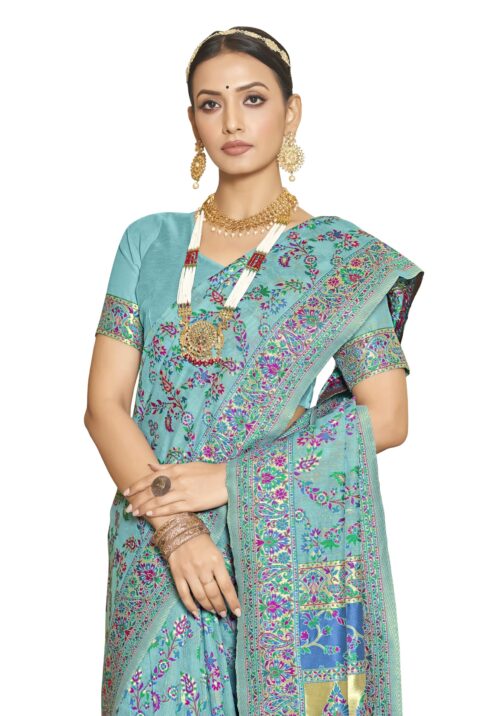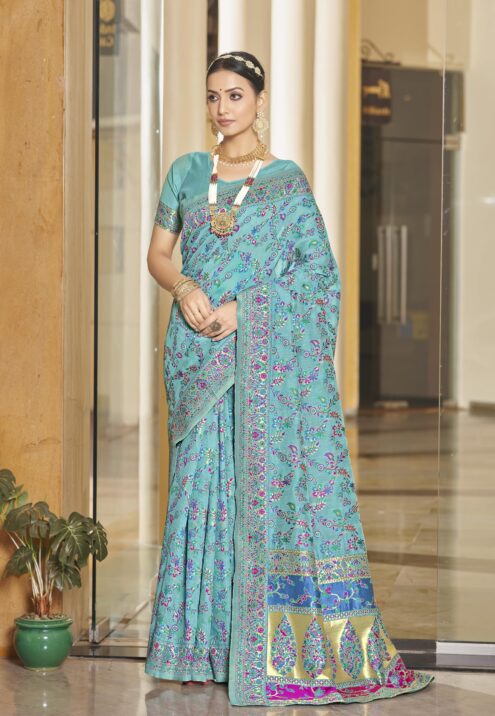 - ✨ Design: All-over intricate golden and silver zari weaving work