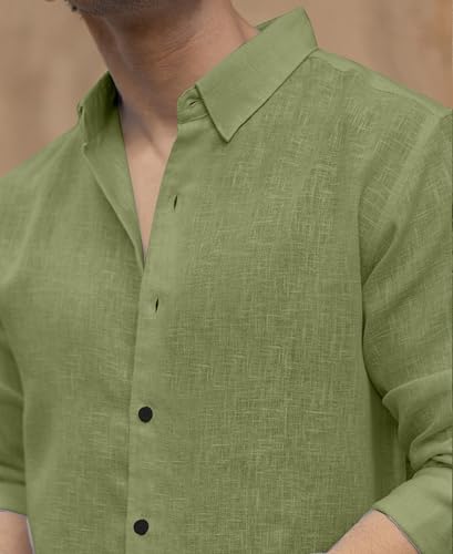 Men's Solid Linen Cotton Shirt | Casual | Plain | Full Sleeve | Summer-Regular Fit| Men Stylish Shirt | Everyday Formal Wear (in, Alpha, M, Regular, Olive)