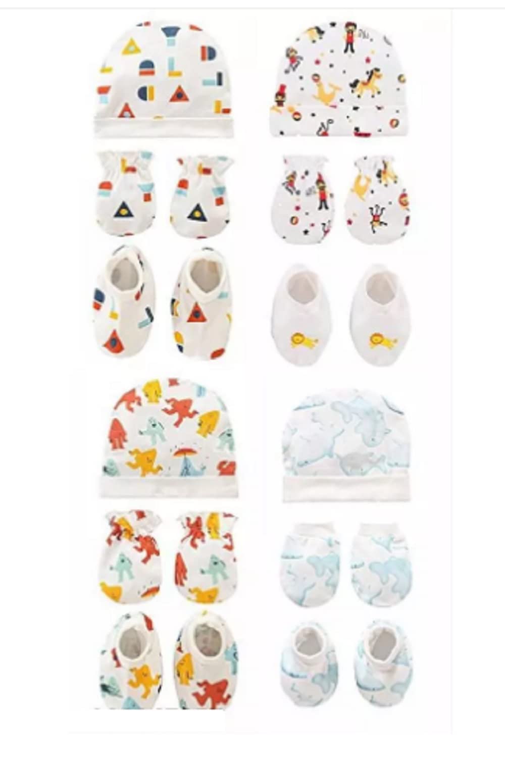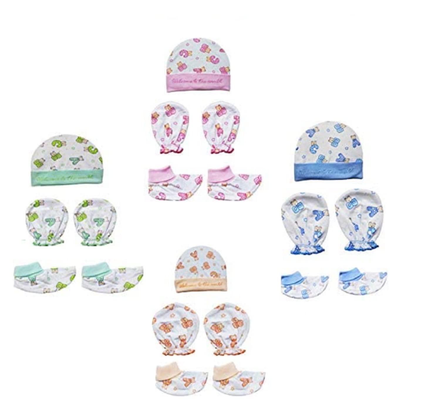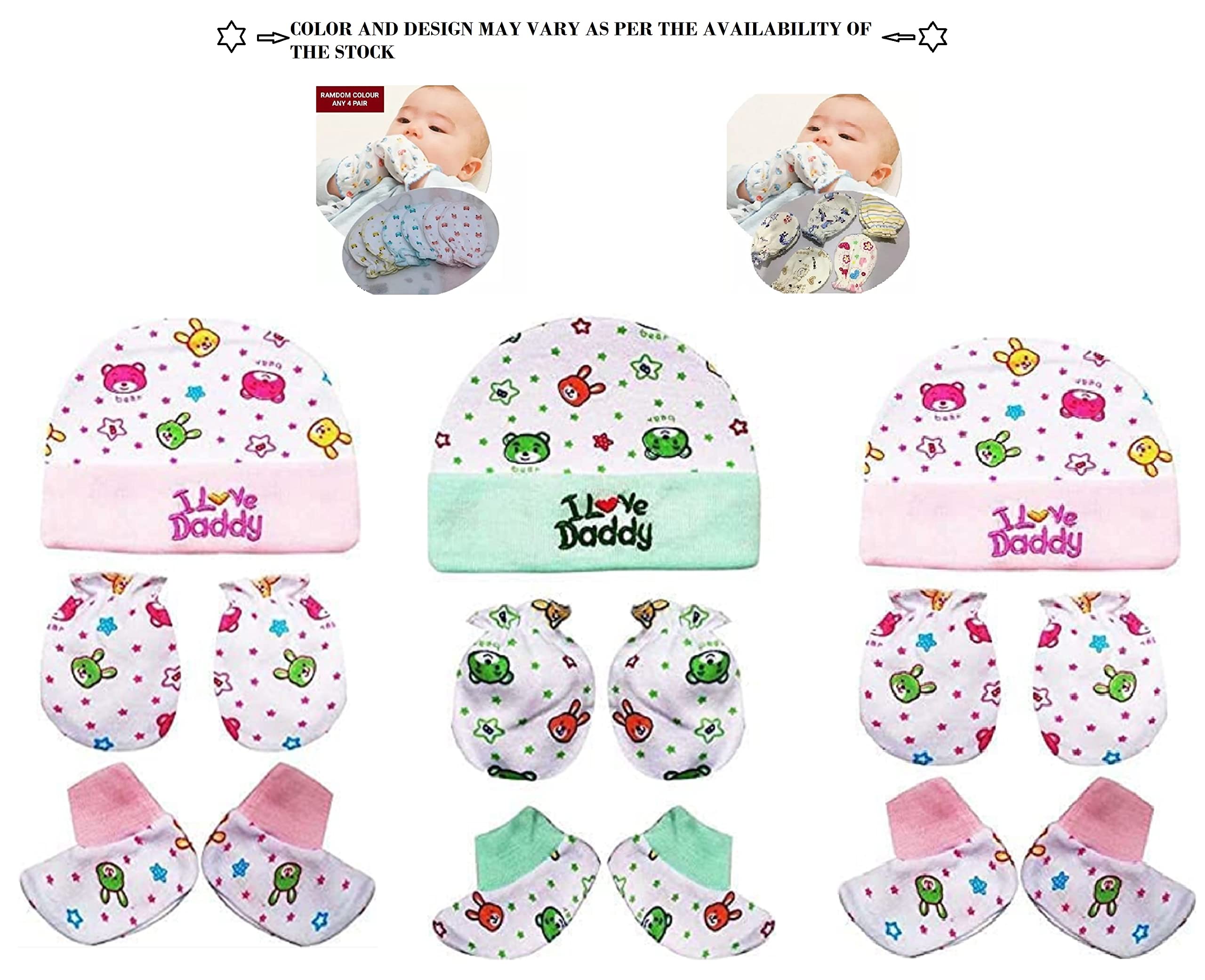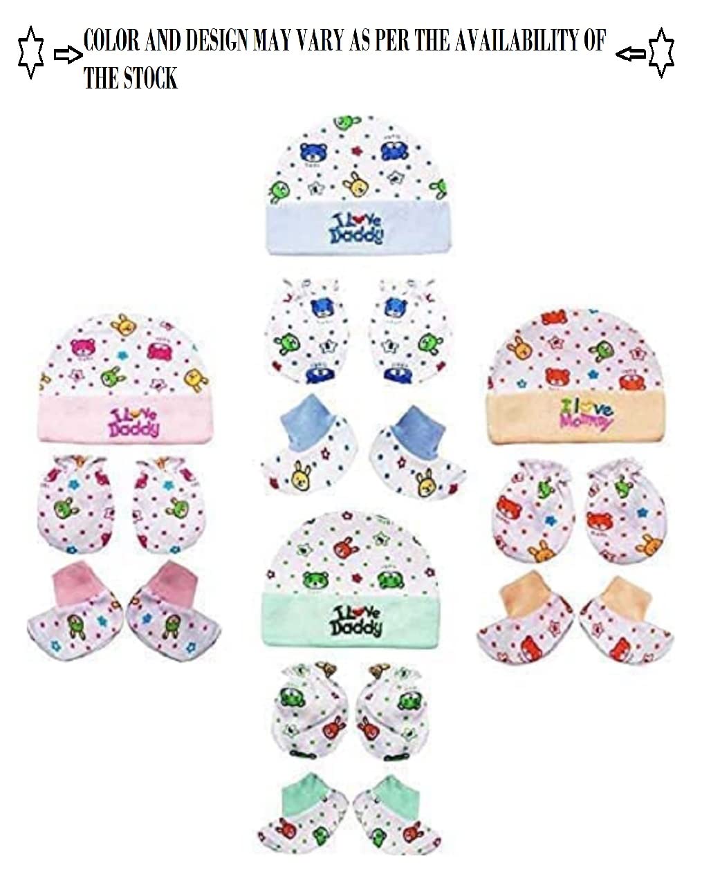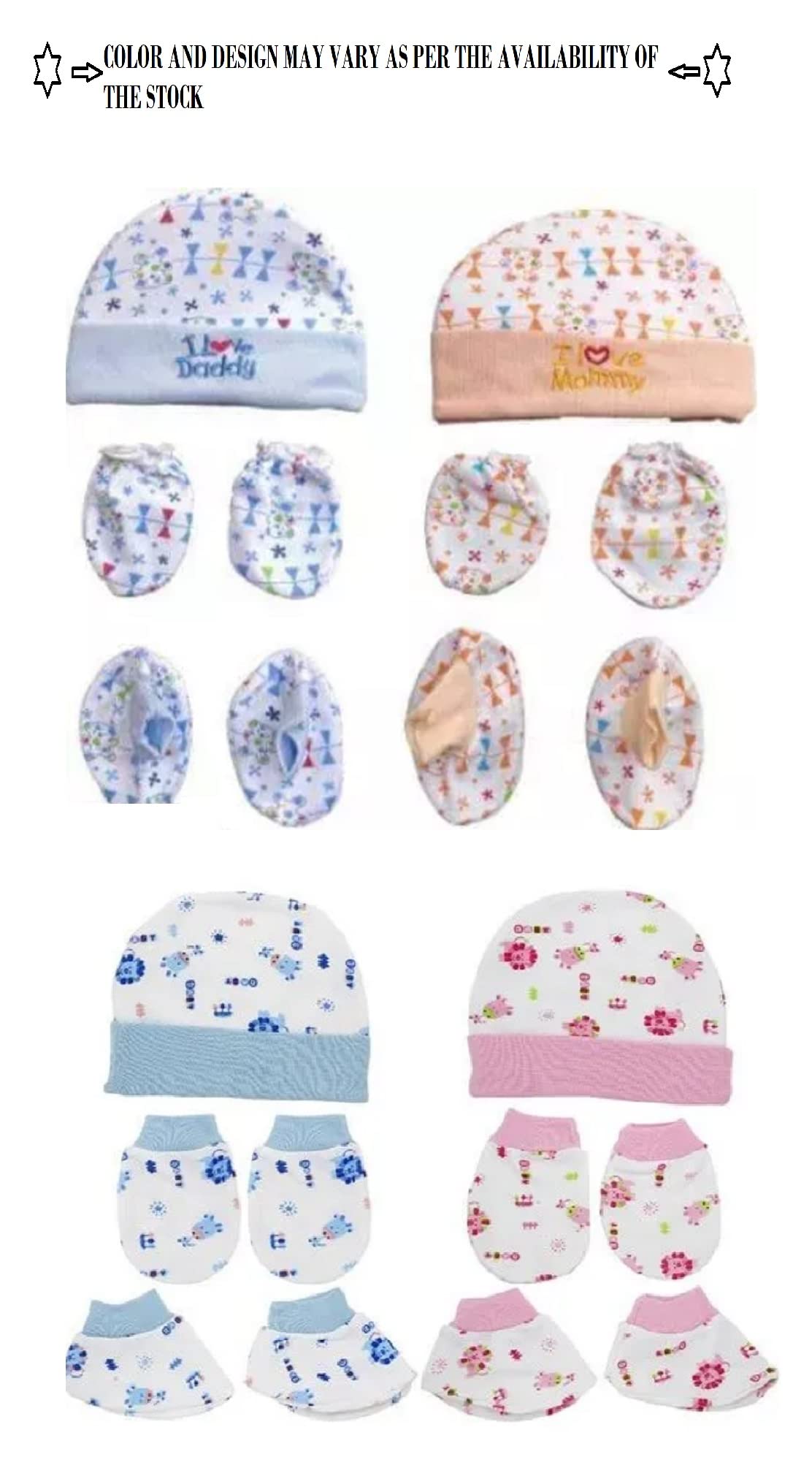 Wavva® 100% Cotton Baby Mittens Caps Gloves and Booty Combo Set (Assorted Colours, 0-6 Months) Durable Cotton Gift Set | Multicoloured. (Pack of 1)