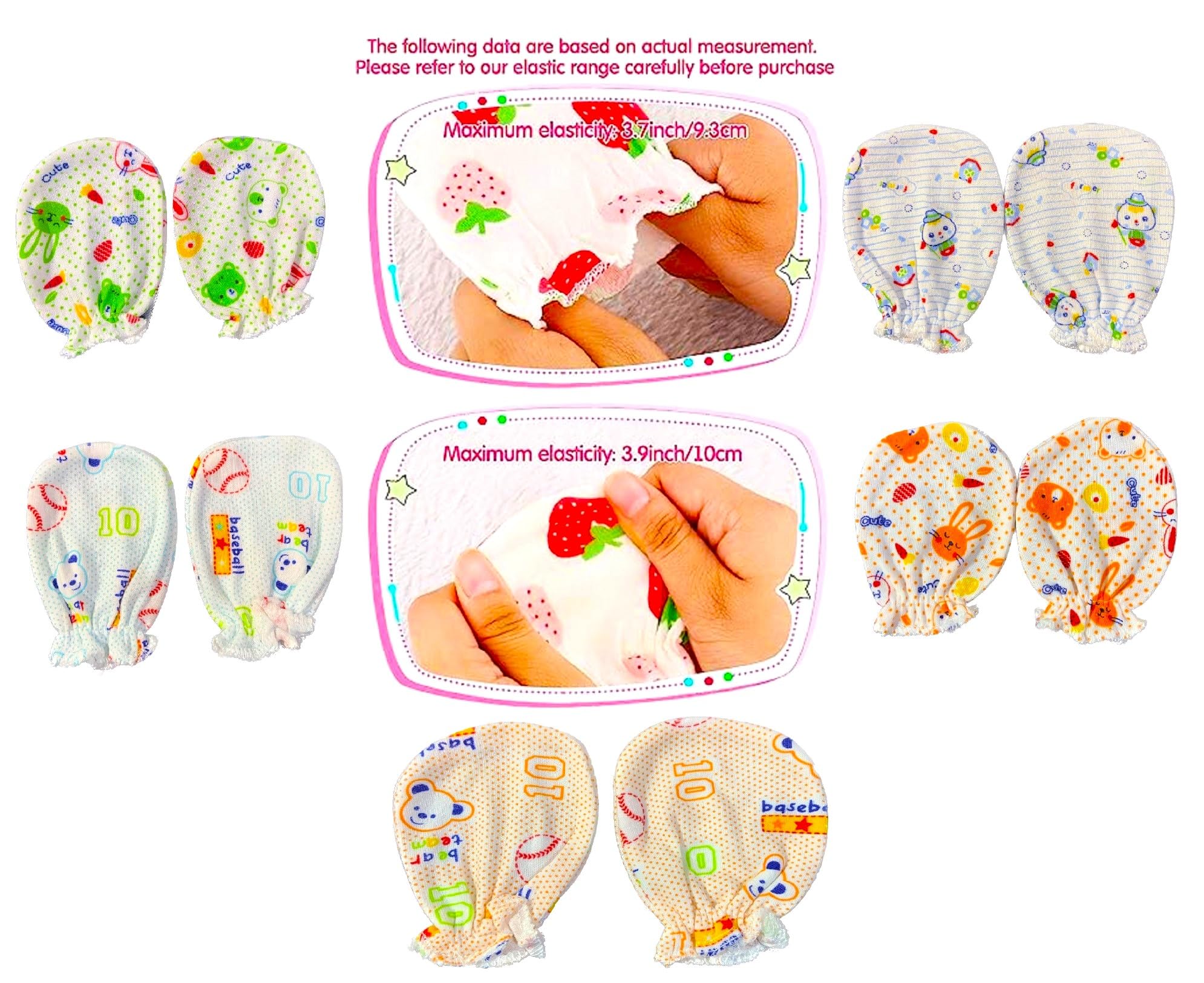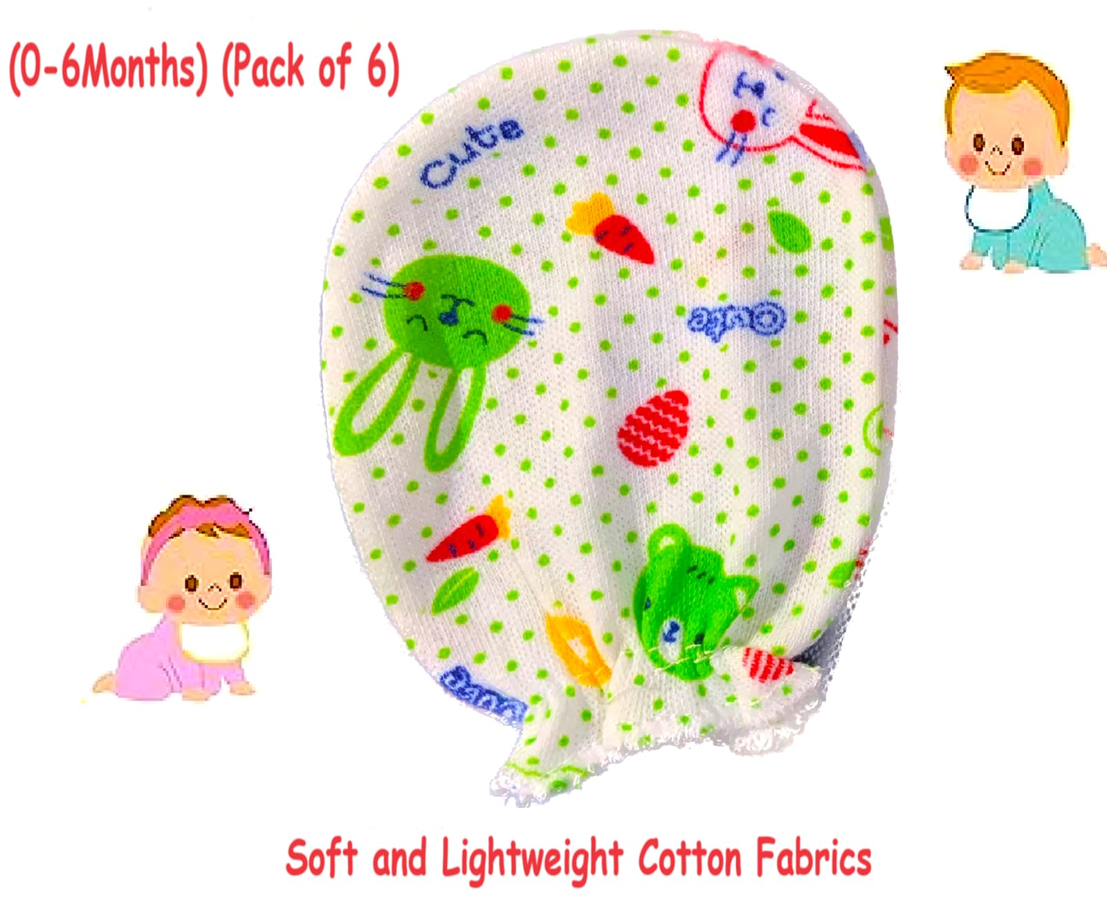 • CASUAL WEAR :- Elastic is Used in These Babies Mitten Sets for Comfort of Your Baby. The All Over Print On The Solid Color Base Makes It Look Attractive. It is Ideal For Casual Wear, Day Outing and Night Wear. These Mittens Are Perfect For Playtime, Fun Time, Nap Time Or Anytime.