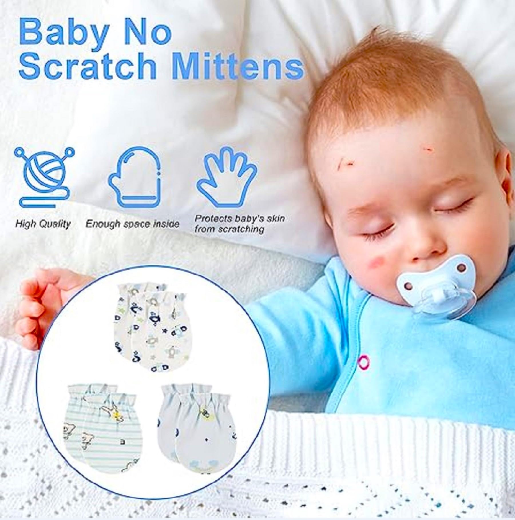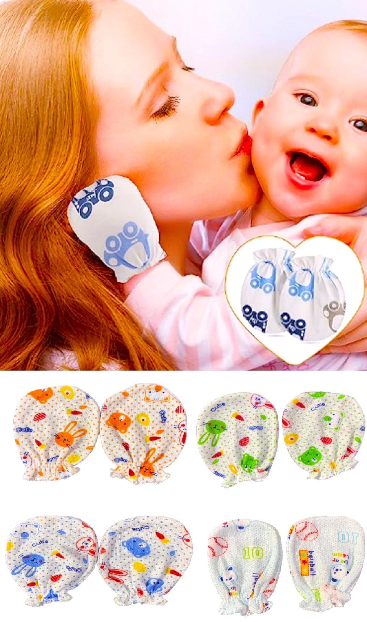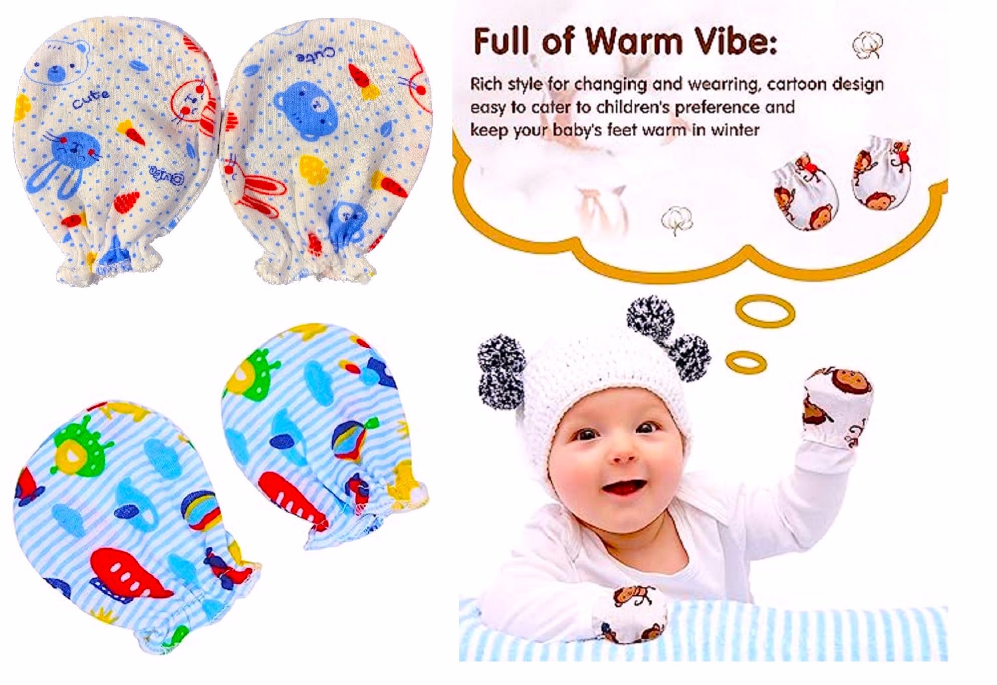 • COLOR AND DESIGN MAY VARY. TRAVEL FRIENDLY :- Our Mitten Set Is Easy To Carry In A Handbag And Ideal For Travel Purposes. They are Safe and Necessary for the Baby. Our Pure Cotton Will Help Them Sleep Better Without Any Disturbance. These Mittens Can Be Used Both Indoors And Outdoors, Making Them A Versatile And Practical Choice For Parents.